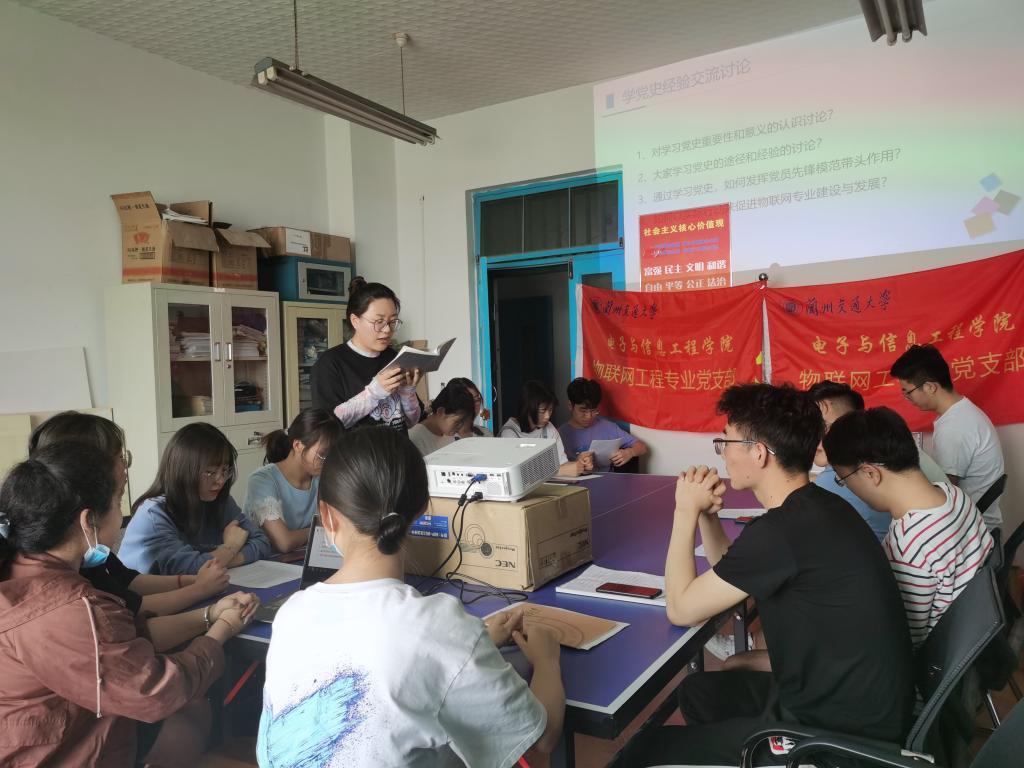 为发挥教师党支部书记 “双带头人”在学生党建中的作用,5月27日下午物联网工程系党支部书记张学军老师在电信学院908室,与物联网专业学生党员一起,交流党史学习心得,物联网工程专业党支部16名学生党员参加此次活动。