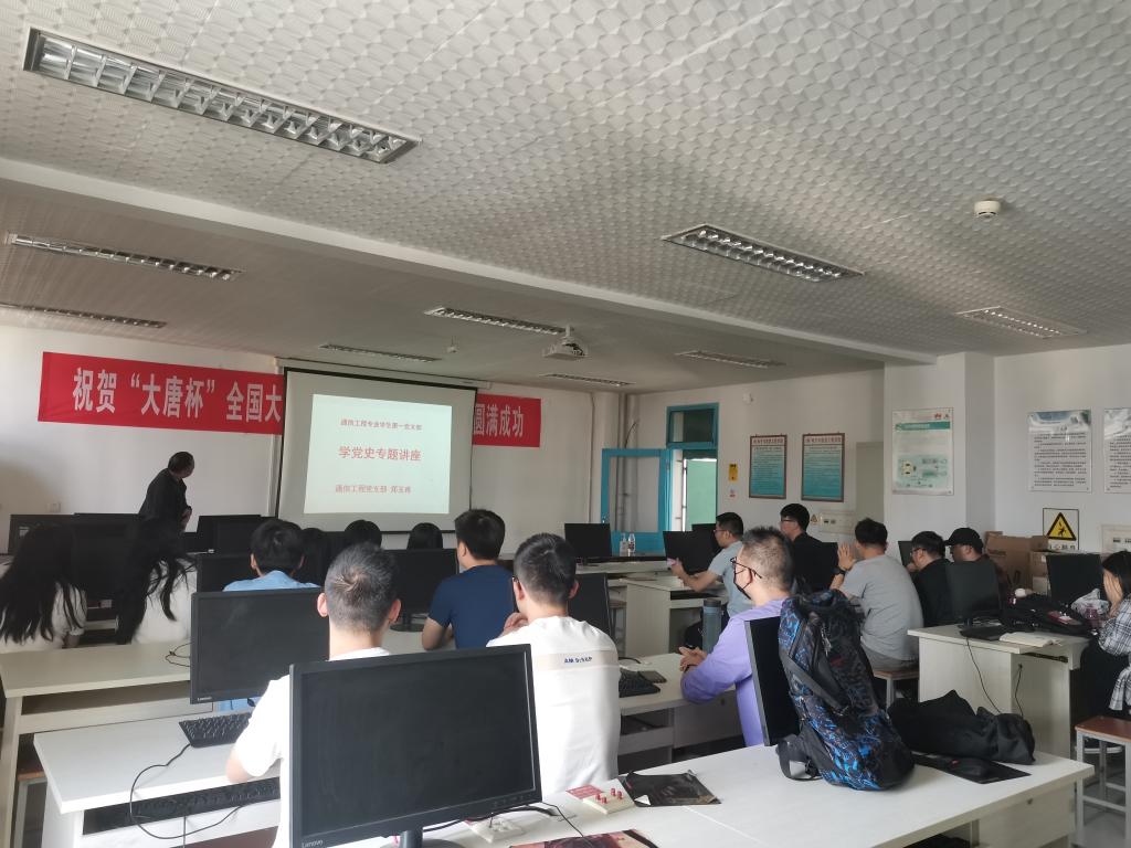 2021年5月27日下午,通信工程系党支部在电子与信息工程学院十楼开展“双带头人”支部书记深入学生支部讲党课活动,通信工程系党支部书记郑玉甫老师作了学党史专题讲座,通信工程专业第一党支部所有成员参加此次讲座。