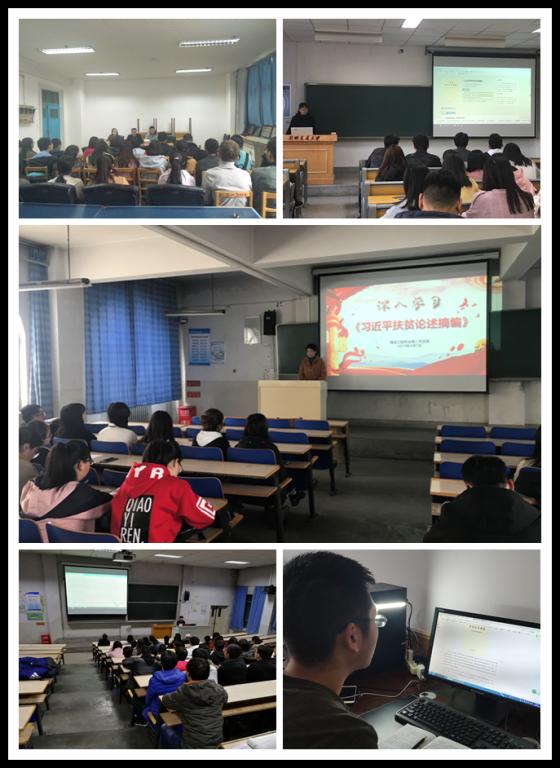 学院以中心组学习、支部专题学习、党员自学等形式深入学习《习近平扶贫论述摘编》,从决胜脱贫攻坚,共享全面小康;坚持党的领导,强化组织保证;坚持精准方略,提高脱贫实效;坚持加大投入,强化资金支持;坚持社会动员,凝聚各方力量;坚持从严要求,促进真抓实干;坚持群众主体,激发内生动力;携手消除贫困,共建人类命运共同体八个方面对习近平总书记关于脱贫攻坚系列重要讲话及指示精神进行了深入学习和讨论。