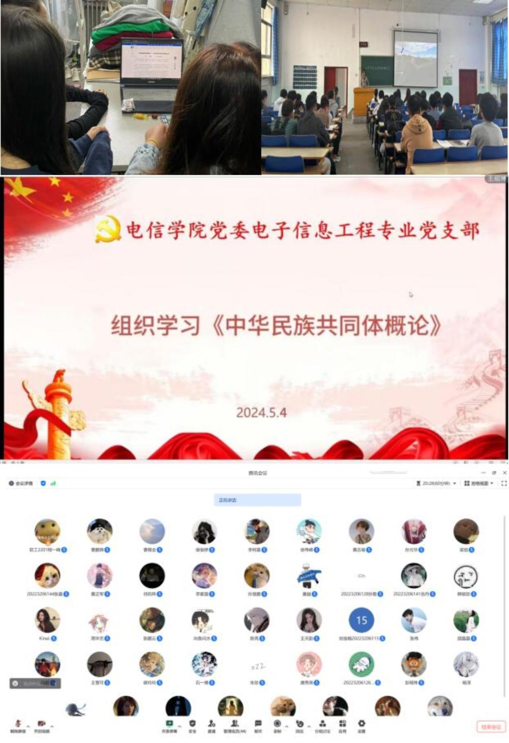 为深入贯彻落实习近平总书记关于加强与改进民族工作的重要思想,贯彻立德树人教育使命和根本任务的内在要求,贯彻落实党的民族政策,以铸牢中华民族共同体意识为主线,加强民族团结进步教育。近期,电信学院组织全院师生学习《中华民族共同体概论》。