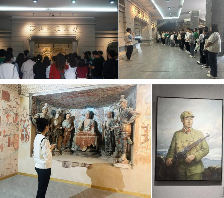 本次联谊活动由三位党支部书记带队,以参观西北师范大学博物馆拉开活动序幕。通过讲解员生动细致地解说,同学们对展出的彩陶文化、书画艺术,甘肃民俗有了更为深刻的理解,充分领略到甘肃深厚的历史文化底蕴,极大地提升了同学们的文化自信,民族自信。特别是通过学习享誉全球的敦煌壁画艺术和麦积山雕塑艺术,增强了各位党员的民族自豪感;在十一特别国庆献礼馆展出的红军抗战系列油画,把同学们带到波澜壮阔的革命岁月中,让红色记忆永远留在每位同学心中,激励我们每一个人不忘初心,牢记党的使命。