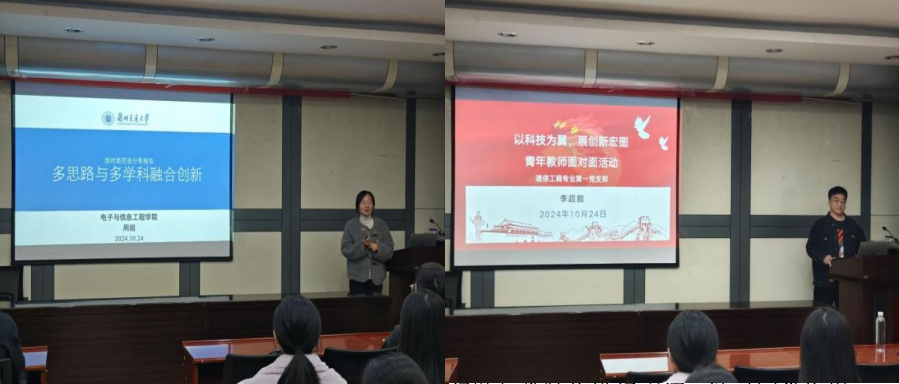 为深入贯彻落实习近平新时代中国特色社会主义思想,响应党中央关于加快建设世界重要人才中心和创新高地的战略部署,2024年10月24日,电子与信息工程学院通信工程专业第一党支部举办了主题为“以科技为翼 听学者心声 展创新宏图”的与青年教师面对面学术交流活动。本次活动旨在通过与青年教师的面对面深入交流,对党支部的青年学子进行科技前沿的引领和科研思维的启迪,提高他们的创新意识和科研能力,进一步增强党支部的学术氛围和凝聚力。通信工程专业第一党支部全体党员、入党积极分子与学院青年教师代表参加了本次活动。