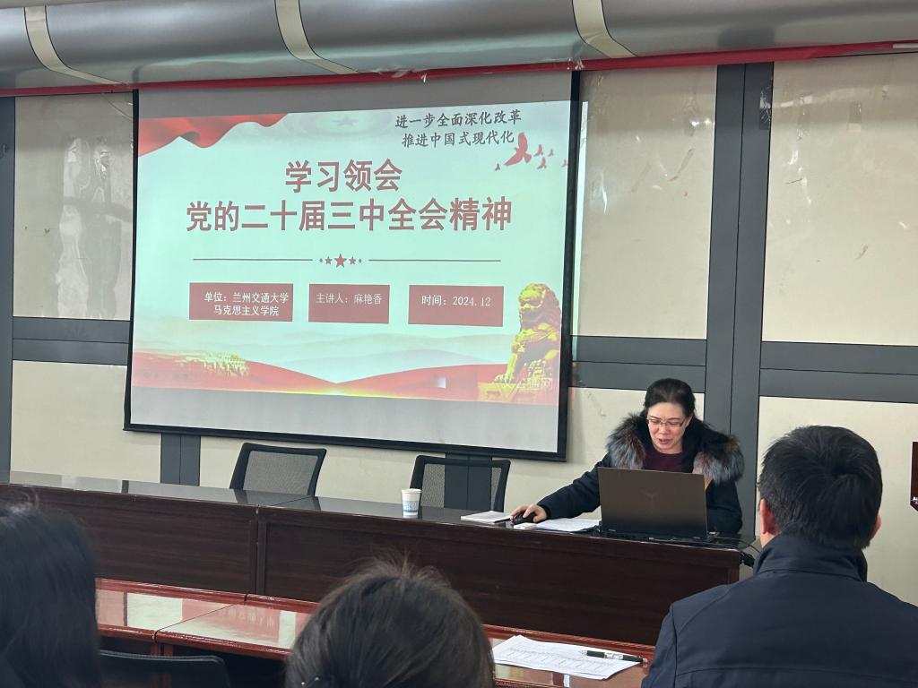 为全面深入学习宣传贯彻党的二十届三中全会精神,系统深入开展全会精神宣讲,进一步教育引导广大师生把思想统一到党的二十届三中全会精神上来,根据《2024年兰州交通大学理论宣讲工作方案》《兰州交通大学学习宣传贯彻党的二十届三中全会精神工作方案》要求,结合学院相关安排,12月26日,马克思主义学院麻艳香教授受邀为电子与信息工程学院全体党支部书记及学生党员代表讲授了一堂以“学习领会党的二十届三中全会精神”为题的宣讲会。会议由学院党委书记赵庶旭同志主持,90余名党员参加了本次宣讲会。