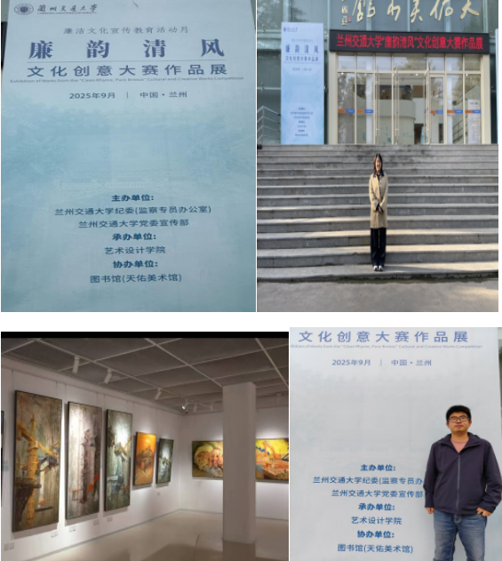 参观期间,展厅内廉洁主题作品涵盖书画、文创、插画、装置等多种形式:以“竹节虚心”“莲出淤泥”为意象的国画作品,笔墨间传递着传统廉政文化的意蕴;融入现代设计风格的廉洁形象海报,则以年轻化的表达让“清廉”理念更具感染力;还有结合专业特色创作的廉洁主题插画,将“廉洁从业”的认知与专业场景相联结,引发了师生的强烈共鸣。