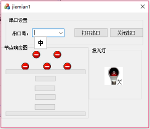 节点响应框中有对应的5个节点的信号灯,节点响应时,信号灯变绿色。投光灯文本框中是投光灯的指示灯,灯亮时指示灯变红。