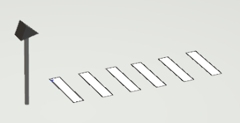 灯光投射模块的主要功能就是在路面上投射出灯光,以达到提示司机同时为行人照明的作用。LED灯具有节能的特性,需要设计的是使其能在地面上投射出人行道的形状。结合市面上现有的投光灯,项目选用了一种高功率投射距离远的广告投影灯,将投影灯片设计成并排的横条图案,投光灯上电后就会投射出人行道的形状。模拟的投射效果图如下图3.3所示: