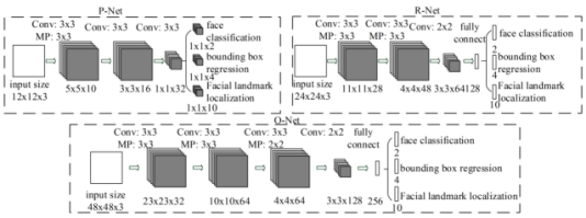 2016年4月,中国科学院深圳先进技术研究院在arXiv上发表《Joint Face Detection and Alignment using Multi-task Cascaded Convolutional Networks》[4],该论文提出了MTCNN人脸检测算法。这里的Multi-task意思为将人脸检测(分类)和人脸框位置矫正(回归)以及人脸关键点定位、姿态等属性的检测相结合。Cascaded Convolutional Networks意为级联的卷积网络。Alignment意为人脸对齐。下面介绍一下该算法的基本思想。