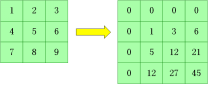① 积分图像上某一点的值为原图对应位置上左上角所有像素值之和。图2.3为积分图计算过程。