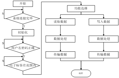 控制端以PC为控制核心,通过串口与数据端进行通信。首先,数据端与PC建立连接后初始化,控制端通过单总线将指令和数据逐位传送到pcDuino的数据缓存器中,接受到指令pcDuino会先进行判断,若是读取数据,NFC模块通过射频技术读取电子标签中的数据,根据SPI协议将数据发送回pcDuino,再通过串口将数据传到控制;若是录入数据,pcDuino会将缓存器中的数据通过SPI协议传到NFC模块,再由NFC模块通过射频技术将数据写入电子标签。