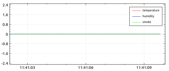 向函数接口传入数据就能看到动态的数据变化,横坐标是时间轴,每隔3秒数据刷新一次,纵坐标是测量值范围,测量范围会根据传入值的大小自动扩展。模拟报警使用了Qt的QPixmap类方法,当环境数据超过预设值,则加载报警图片在相应的部件上,恢复正常时加载不报警图片。