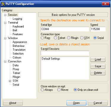 用putty工具进入Linux,波特率选择115200。