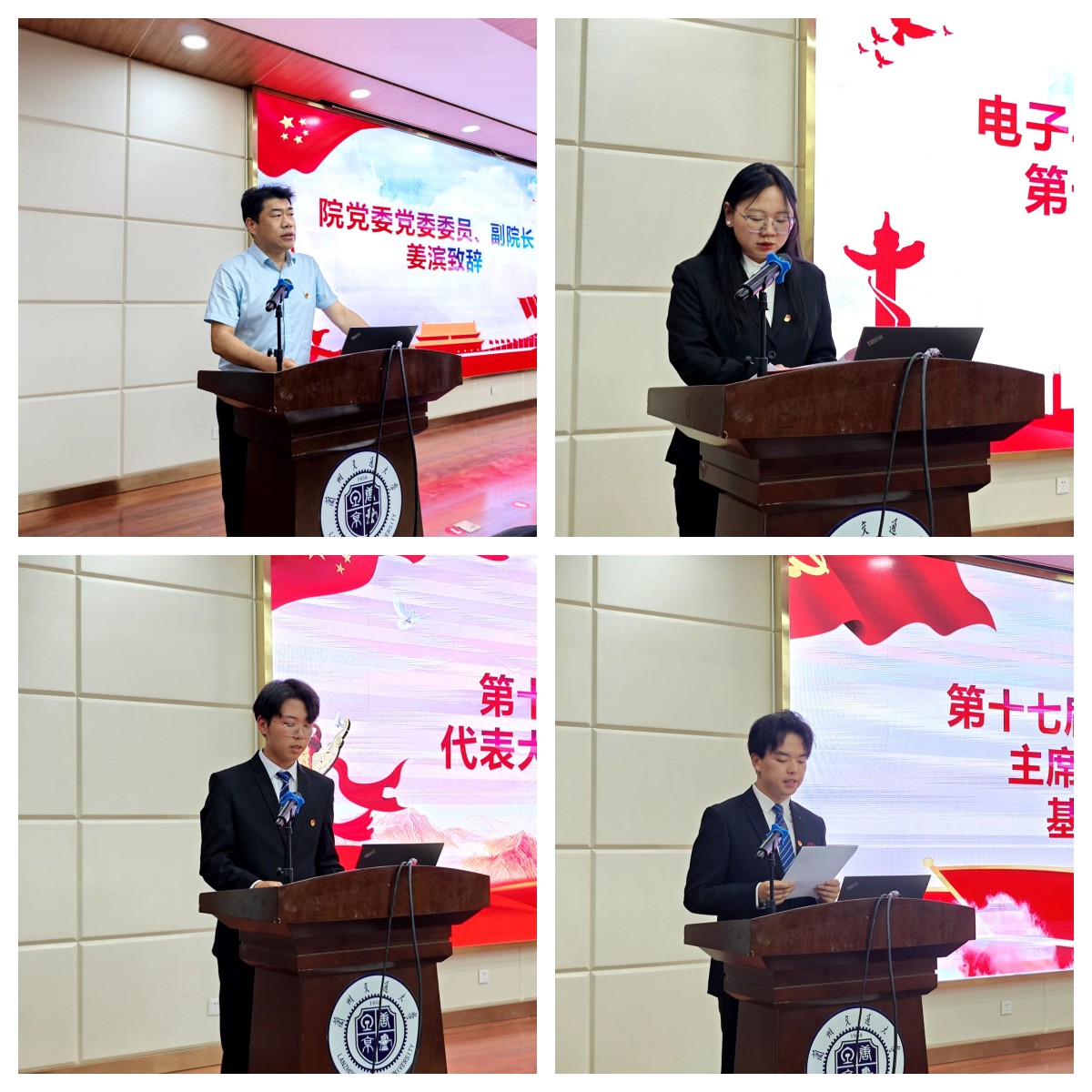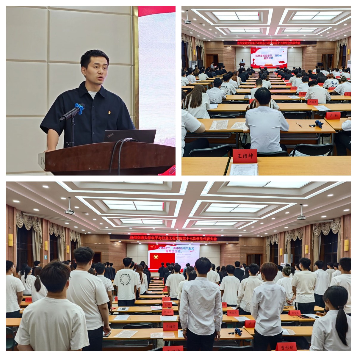 兰州交通大学电子与信息工程学院第十七次学生代表大会于2024 年 5 月 18 日 19:30在我校二教报告厅顺利召开。电信学院党委委员、副院长姜滨老师,学院团委书记杨天霞老师,学院辅导员徐建军老师,学院辅导员盖海龙老师,校第十五届学生会主席团成员吴帅同学出席了本次会议。电信学院第十六届学生会主席团全体成员及121名学生代表参加了会议。