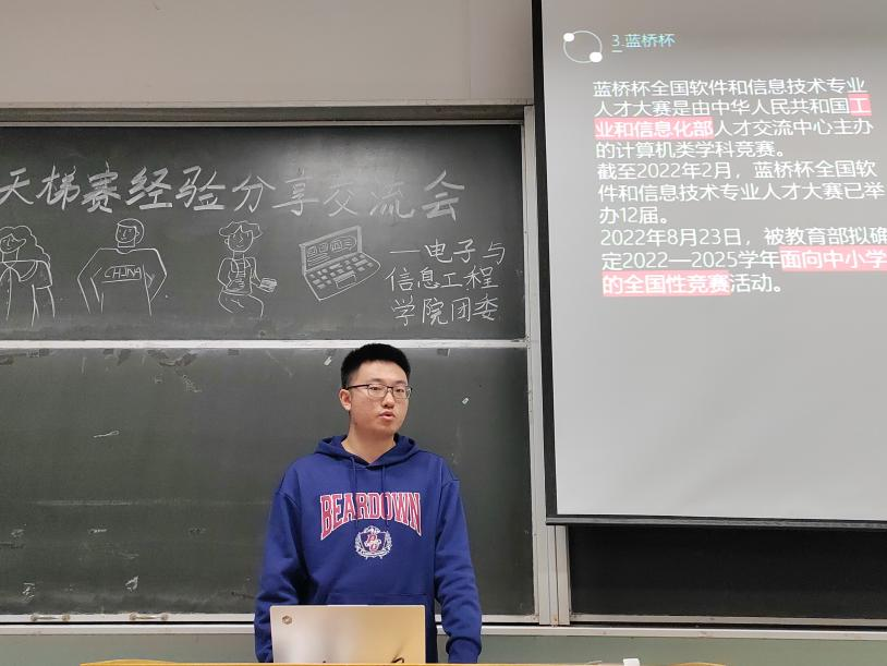 为了提升学生们的编程能力,让大学生能够接触到前沿的编程技术和应用,拓宽视野,激发创新灵感,通过参与各类竞赛积累宝贵的经验。电子与信息工程学院团委于2024年3月26日19时30分在7教举办“蓝桥杯、天梯赛经验分享交流”活动。