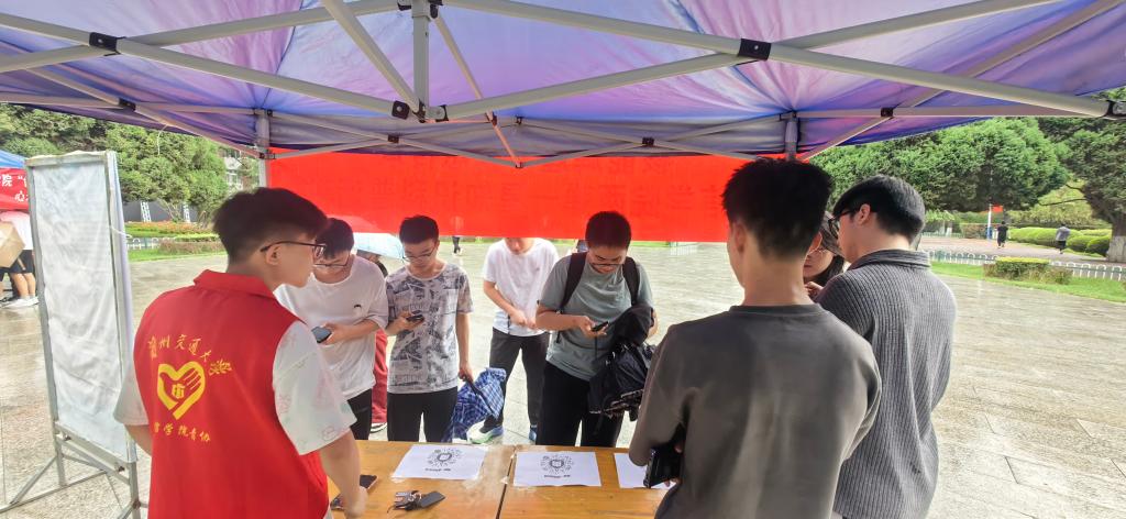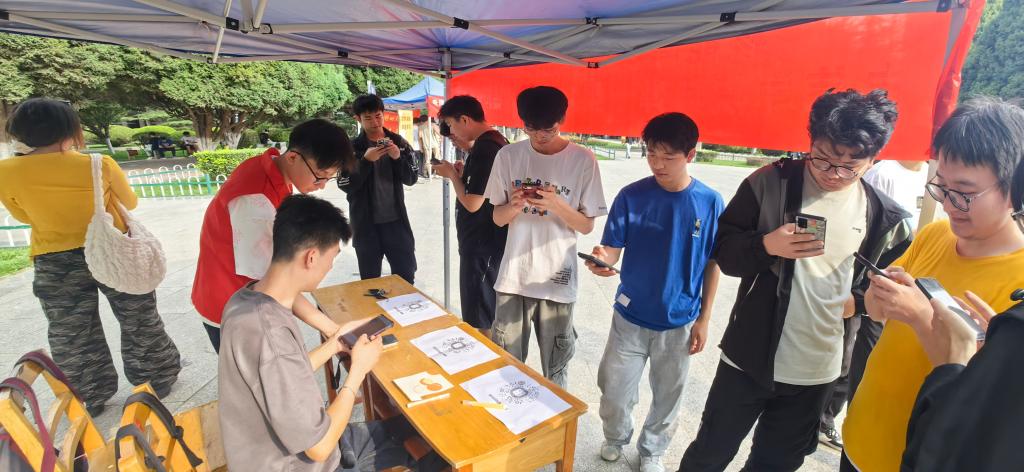 活动于下午14:00准时开始。路过的同学被活动现场精美的海报和志愿者们的热情所吸引,纷纷驻足,积极参与。现场的工作人员井然有序地引导前来参加的同学通过微信扫码线上答题的方式,重温了“两弹一星”的历史背景、科学家们的艰辛奋斗故事以及这一伟大成就对国家和民族的深远影响。活动现场气氛热烈,参与者们纷纷表示,通过这次答题活动,他们对“两弹一星”有了更全面的认识,对科学家们的奉献精神有了更深的体会。随着活动的圆满结束,同学们带着满满的收获和对未来的憧憬,畅想着自己和祖国更加美好的明天。