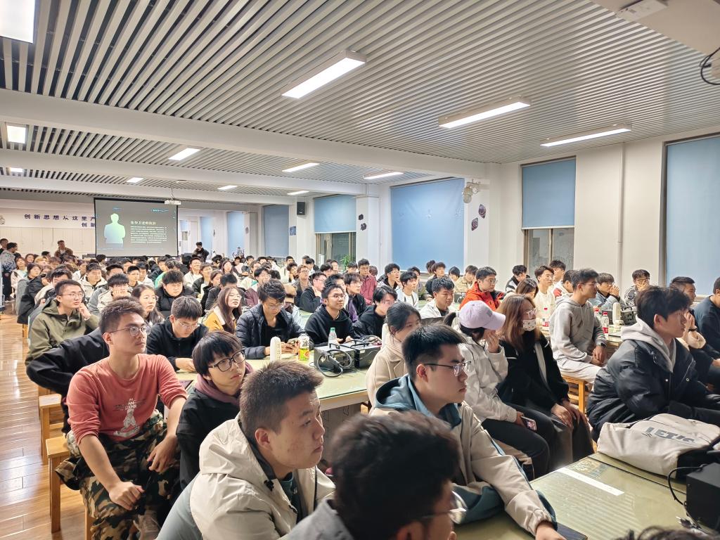 晚会伊始,张华卫老师致欢迎辞。他对新成员的加入表示热烈欢迎,并深入阐释了协会“好奇、坚持、求真、热爱”的会训精神。张老师表示,协会将全力支持同学们的“电子创意”,鼓励大家勇于尝试,在实践中锤炼专业技能、提升综合素养。随后,通过远程连线,已毕业的叶明鑫同学分享了在协会的成长经历,讲述了这段经历对个人发展的深远影响,并为在场同学送上真挚祝福与鼓励。协会会长通过视频系统介绍了协会的发展历程与特色成果,视频中展示了简易云台激光瞄准小车、无人机试飞、智能农场等多项创意作品,以及各类竞赛获奖照片与日常活动剪影,生动呈现了协会的专业氛围与团队活力,进一步激发了新成员的参与热情。