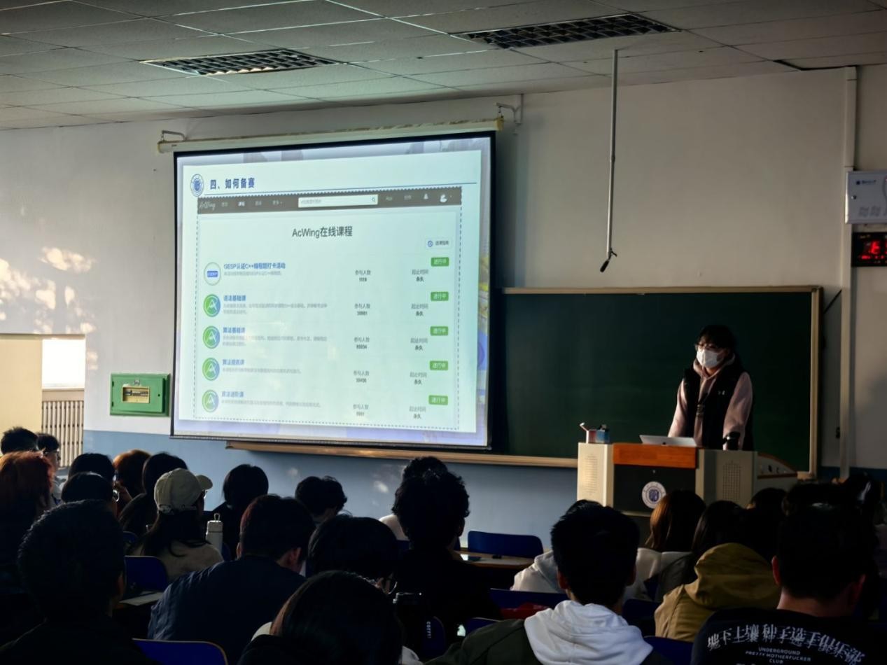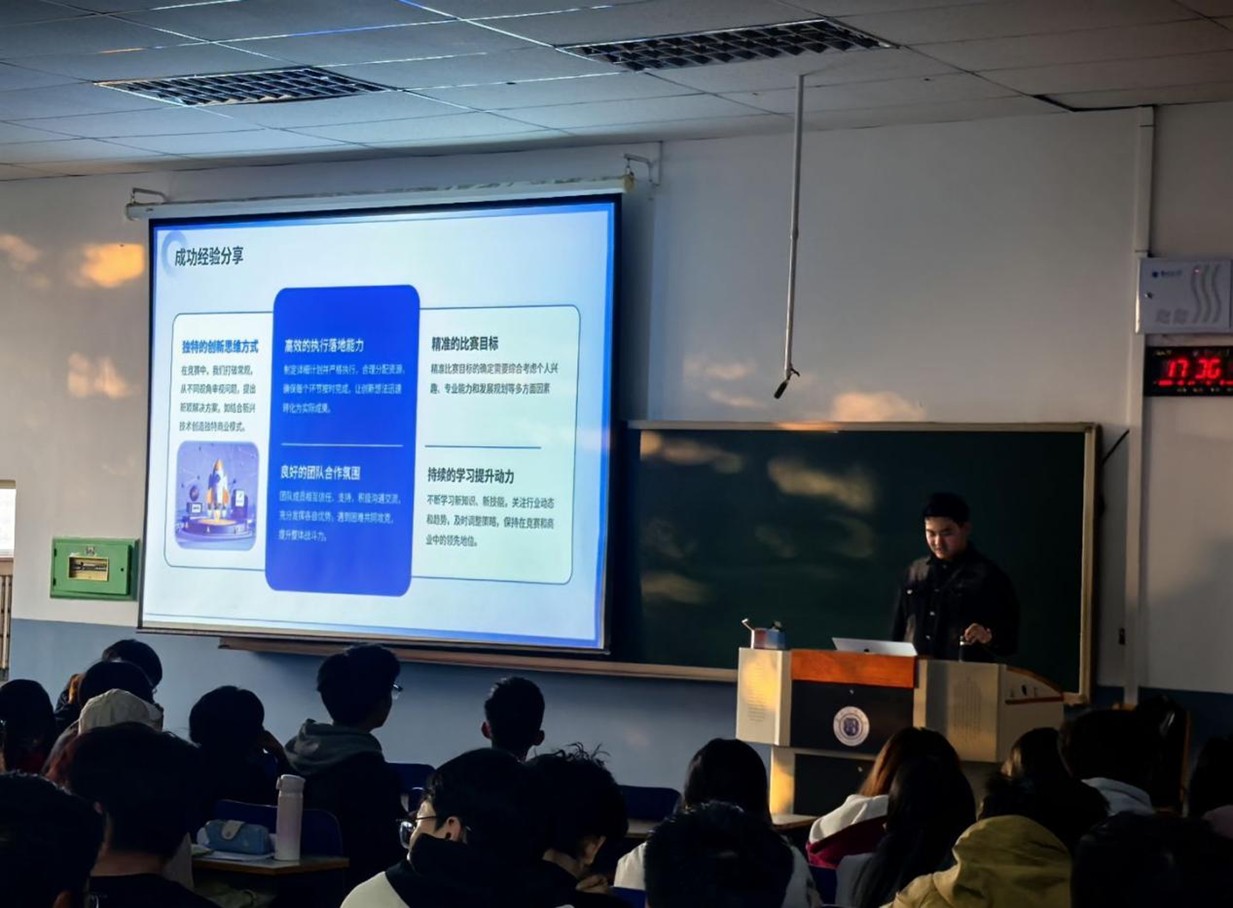 活动伊始,1803 教室内便坐满了前来学习的同学。主办方代表在开场中强调,竞赛是 “课堂知识的延伸战场”,不仅能提升专业能力,更能培养解决复杂问题的思维,希望同学们通过此次分享找到适合自己的 “竞赛赛道”。本次分享聚焦数学建模、机器人创新、英语演讲、创新创业等多个高频竞赛领域,以 “分赛道精准指导” 为核心,针对性解决同学们备赛中的实际需求。