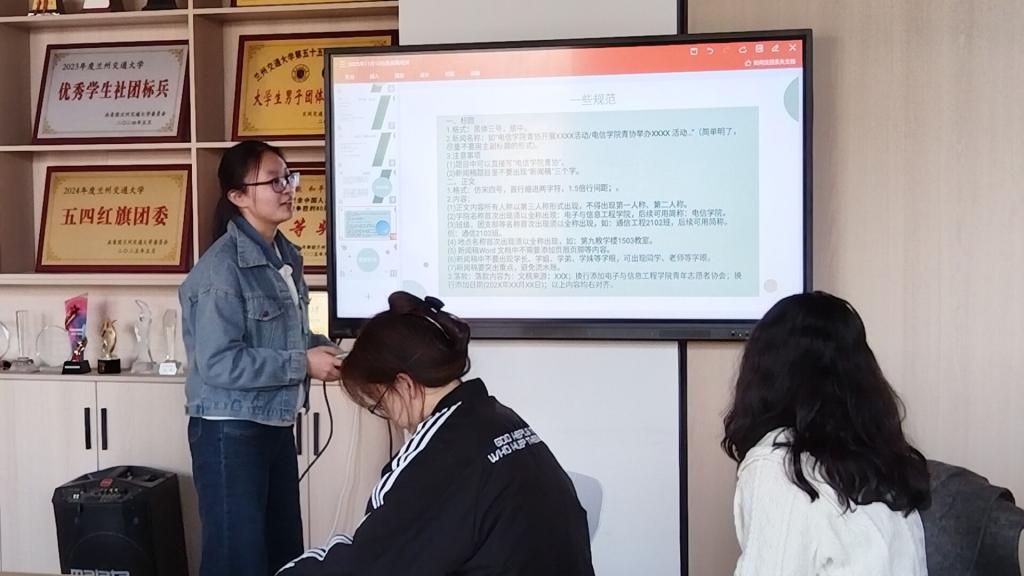 紧接着,团委宣传部负责人袁可欣就宣传工作规范进行说明。强调各社团务必提前报送活动通知,确保活动名称、时间等关键信息准确无误。随后,由宣传部成员开展了新闻稿撰写培训,系统讲解新闻结构、语言规范、图片拍摄要求及新闻稿报送时间,进一步提升社团宣传工作的专业水平。