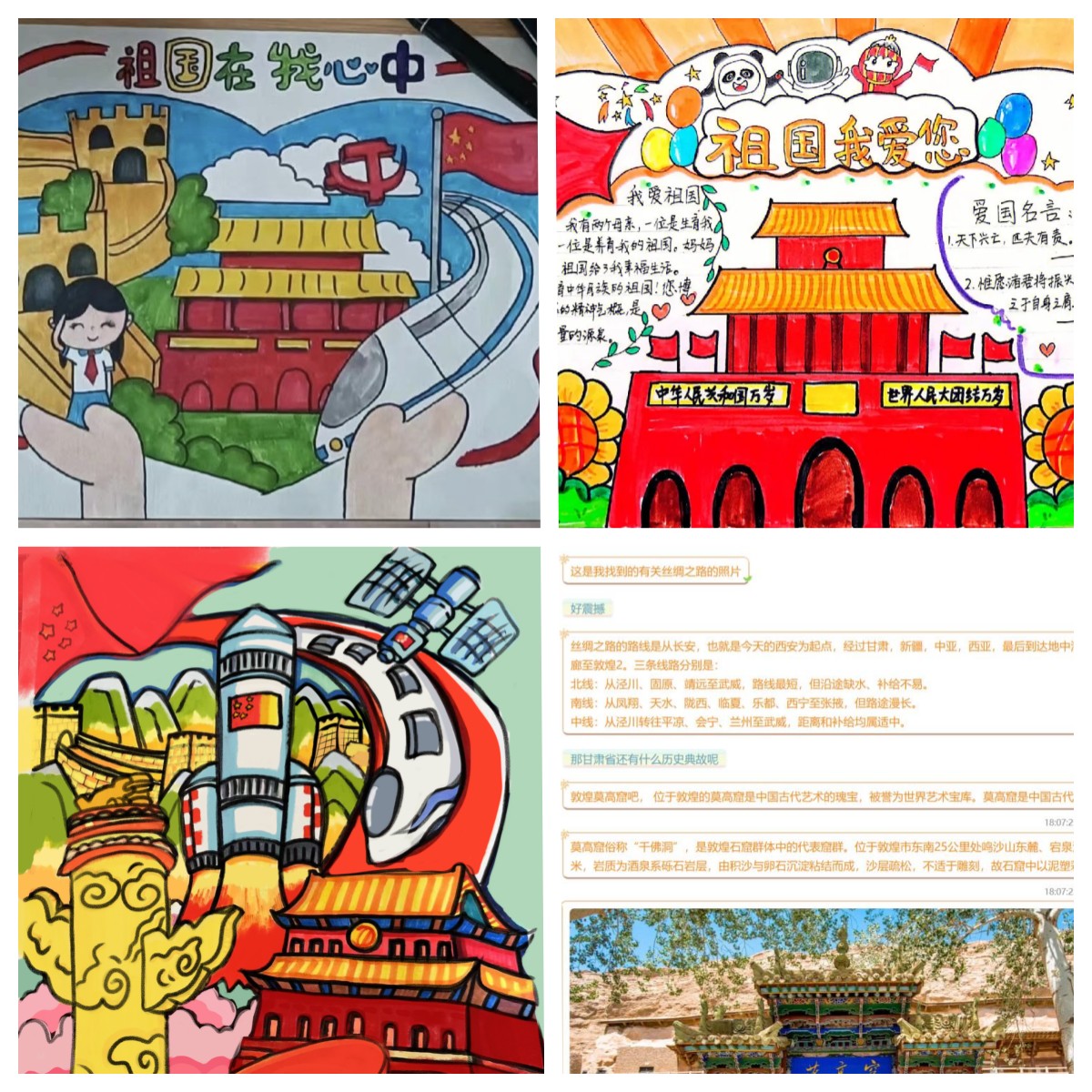 赓续红色血脉,砥砺初心使命。志愿者们积极充当传递接力棒的角色,通过开展红色课堂带领小朋友了解红色纪念地、红色故事以及红色人物,与小朋友们一起学习家乡的红色文化,以红色文化加强梦想之光,用爱国之心铸就青春力量。在活动中,大学生志愿者和中小学生深入探索家乡文化,充分展示了不同地区独有的历史记忆与红色文化,并共同完成了一份“我心中的祖国”作品,作品包括美术绘画、音乐作品、短视频录制等不同形式。