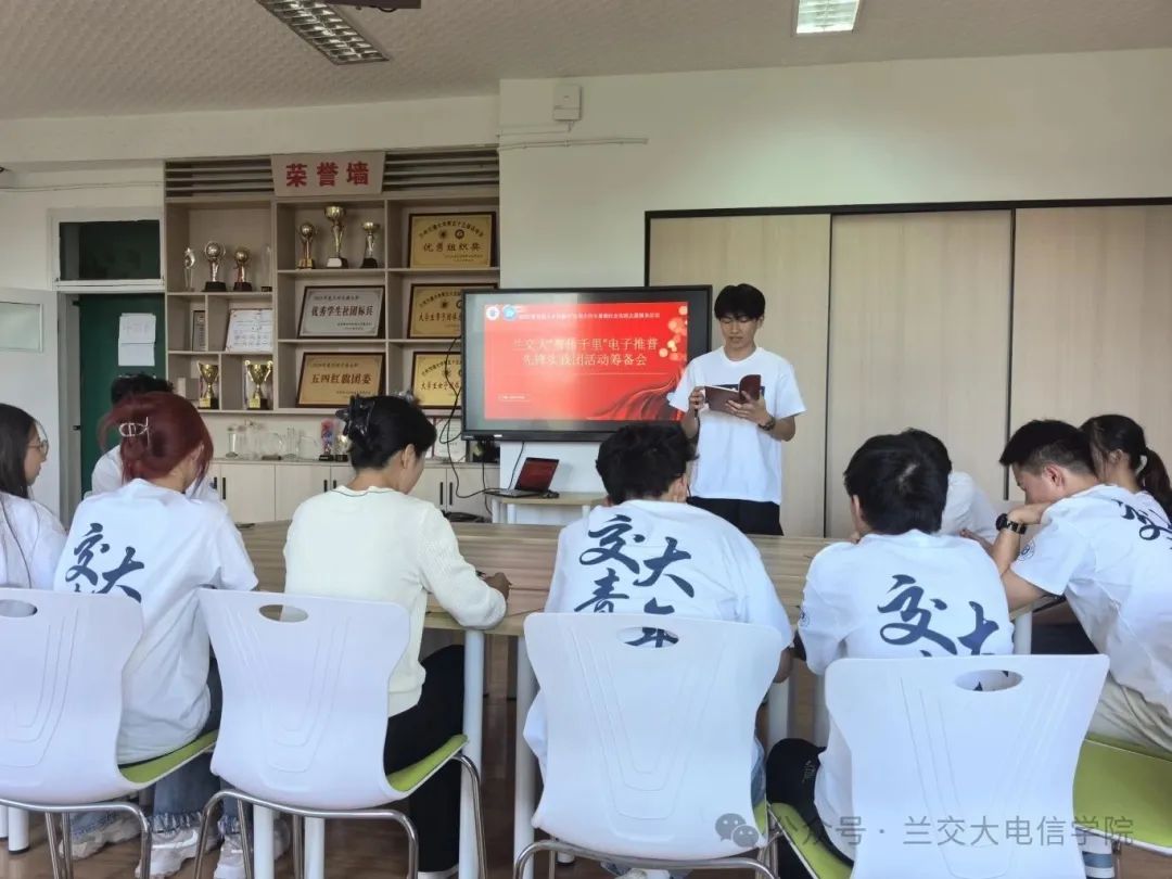 推广国家通用语言文字,是筑牢文化自信根基、促进民族团结、赋能乡村振兴的关键一环。为深化“三下乡”社会实践与国家通用语言文字推广的融合,7月6日,兰州交通大学电子与信息工程学院“普传千里”社会实践团在励志楼406室召开工作部署会暨出征仪式。院团委书记杨天霞老师及全体实践队员参会,共谋推普兴乡新篇章。