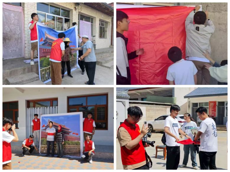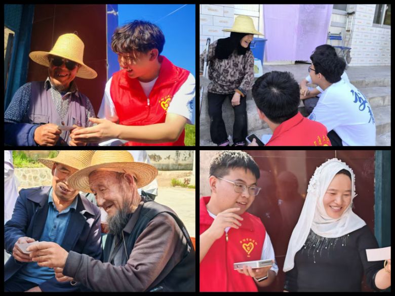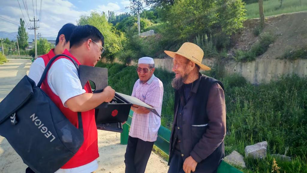 温情入户:影像定格“银发温暖”。7月10日,实践团抵达甘肃省临夏州康乐县八丹乡斜路坡村,开展“定格银发温暖”影像服务。得益于村委会的广泛宣传,活动现场吸引了众多热情参与的老人。团队精心设置了庄严的“天安门”和喜庆的“中国红”两个特色拍摄区。队员们耐心地为每位老人整理仪容,捕捉最佳瞬间。当老人们通过便携打印机即时拿到自己的照片时,喜悦之情溢于言表,“这辈子第一次在天安门前留影!”、“这照片拍得真精神!”等赞叹不绝于耳。针对前期走访中了解到的行动不便老人,实践团特别组建了上门服务小组。他们带着设备走进院落,细心为独居老人整理衣着,留下珍贵的影像。一张张照片承载着幸福的笑容,不仅定格了老人的温暖瞬间,也让学子们切身感受到乡村老人的精神文化需求。