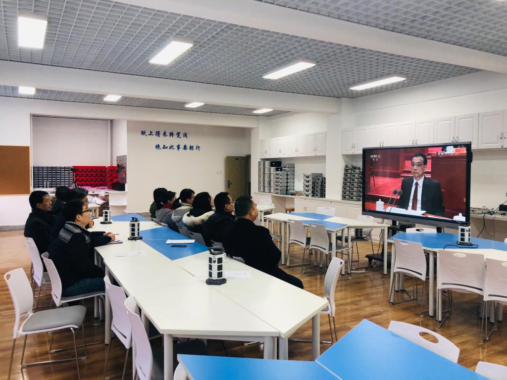 2018年12月18日早晨10:00整,电信学院组织教师与在校学生观看了“庆祝改革开放四十周年大会”。