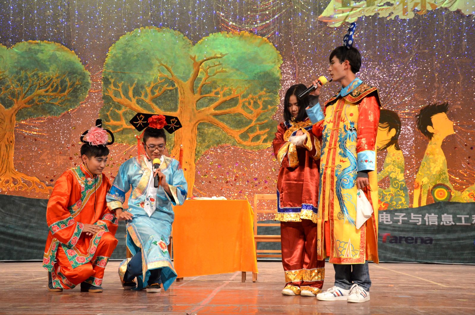 一段充满创意的手影剧拉开了整场晚会的序幕,火爆的街舞、悠扬的藏舞、时尚的荧光舞、优雅的古典舞、唯美的现代舞、歌曲串烧、乐队演奏等节目类型丰富多彩,台上的演员们激情四射,台下观众热情洋溢,掌声欢呼声不绝于耳。《我的中国梦》诗朗诵让大家充满梦想与希冀,学院青协与孔家崖第一小学的小朋友们合作的维族舞蹈《舞起幸福鼓》让现场观众看到了祖国未来的希望;学院十二位老师的精彩T台秀和学生辅导员与工作助理带来的《淋雨一直走》更是将现场气氛推向了高潮;话剧《戏说甄嬛》和学院艺术团的舞蹈《鸿》让大家穿越到古代,现场爆笑连连,掌声此起彼伏。晚会在一曲《和你在一起》的大合唱中圆满落幕。晚会虽然结束了,而2013级新生在交大的学习生活才刚刚起航,相信兰州交通大学电子与信息工程学院有了2013级同学新鲜血液的注入将会再创辉煌!