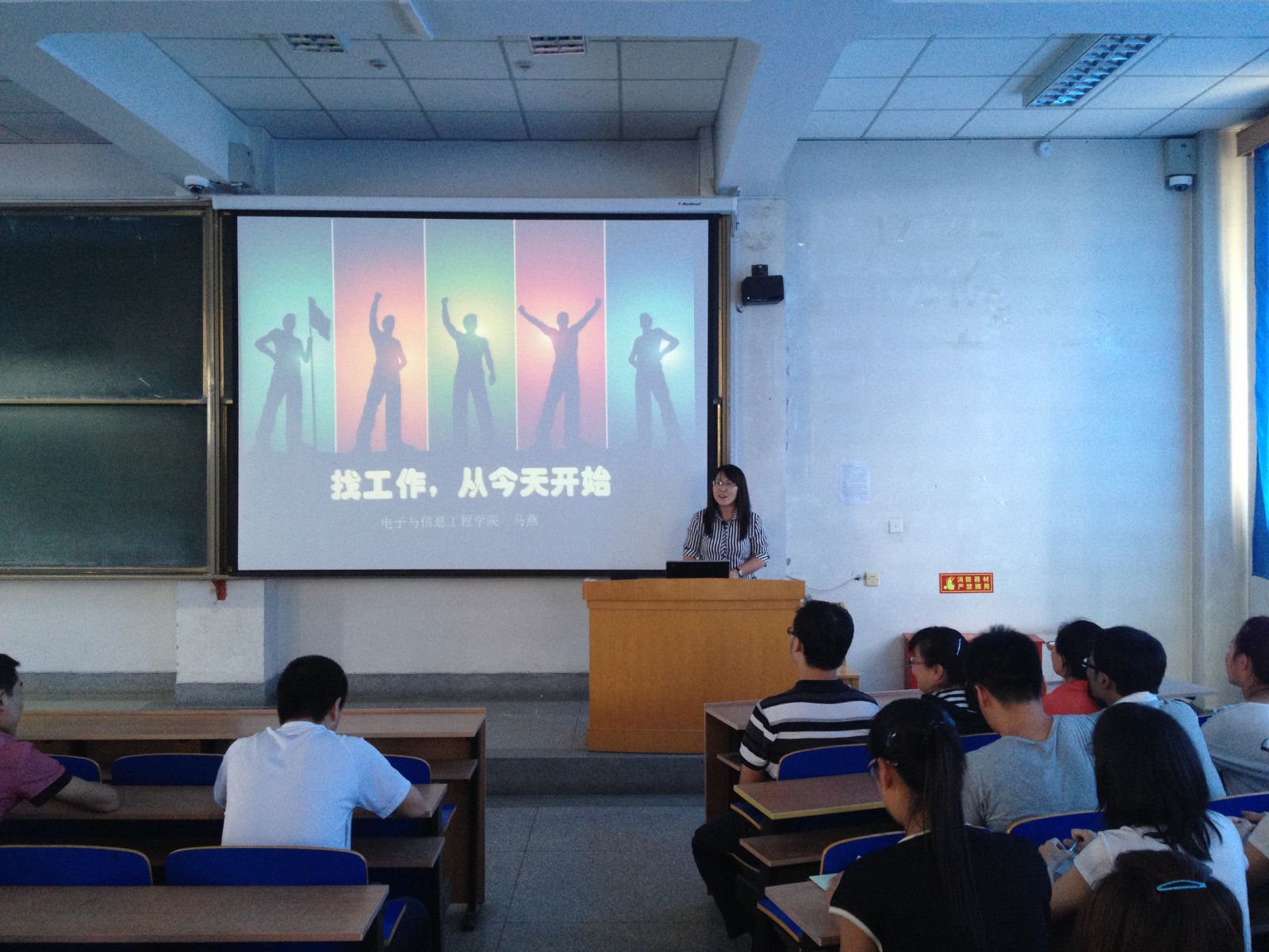 为提升应届毕业生就业意识,帮助学生树立正确的就业态度,转变就业观念,7月10日下午,电子与信息工程学院于第四教学楼2406教室召开2014届学生就业工作动员讲座。电信学院所有2014届毕业生以及各专业辅导员参加了本次讲座。讲座由电信学院党委副书记、副院长马燕主持。