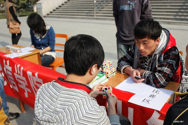 为了丰富同学们的业余学习生活,提高同学们的动手实践能力与反应能力,同时创造更活跃的学院文化,电信学院团委于2012年4月7日在校图书馆前举行了以“玩出智慧,转出精彩”为主题的魔方挑战赛活动,本次比赛吸引了来自全校100余名魔方高手前来参赛。