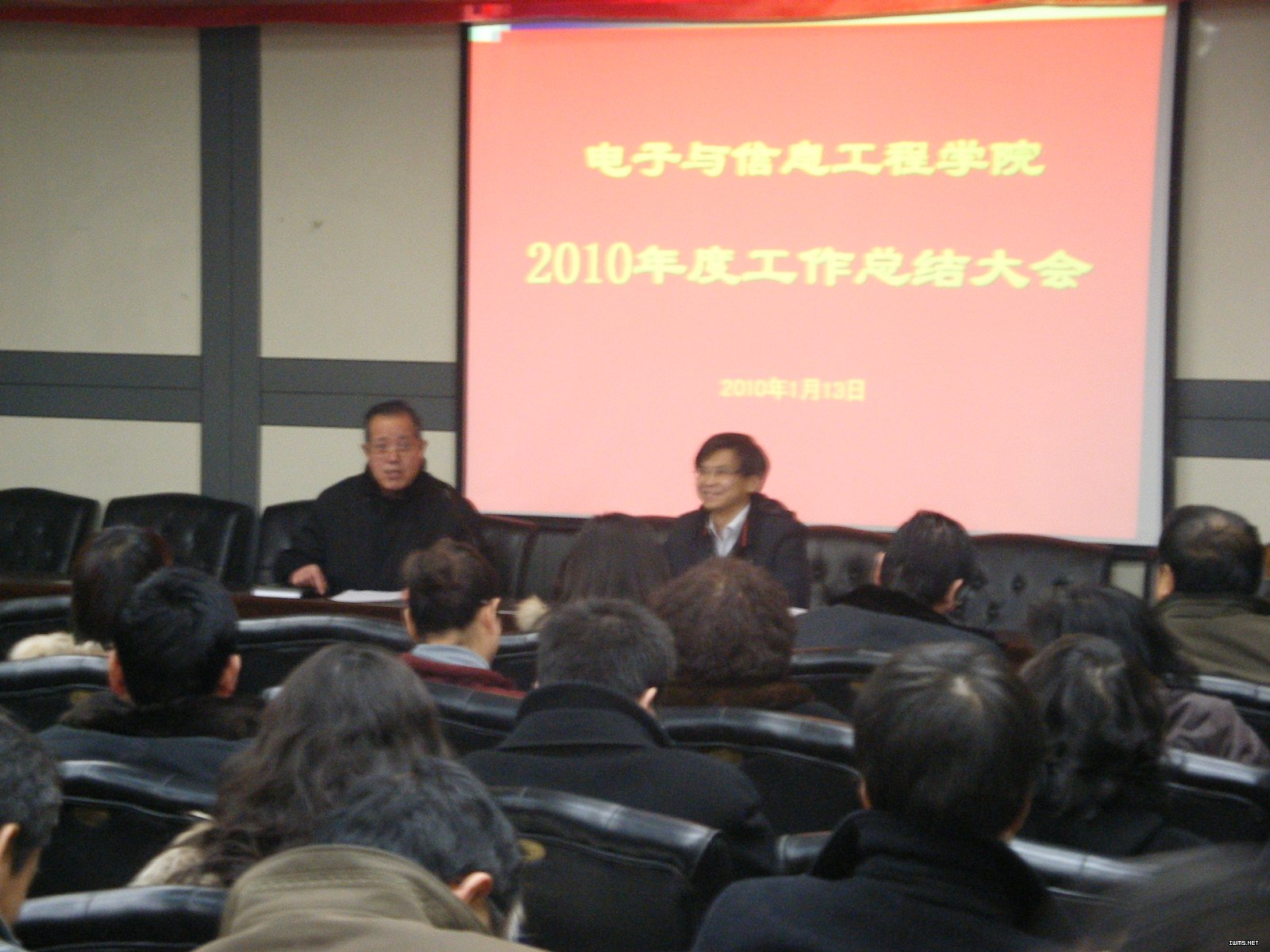 2011年1月13日下午,电信学院在学院会议厅召开2010年度学院工作总结大会,学院领导及教职工110余人参加了会议,会议由学院副院长伍忠东教授主持。