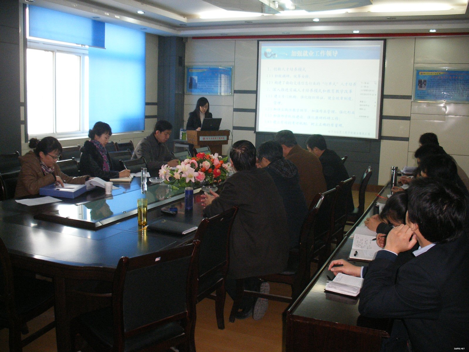 2010年11月23日上午,马军党副校长,招就处王阳春处长,凌翔一行三人来我院检查指导就业工作,学院领导、全体学生工作人员参加了此次调研会议。