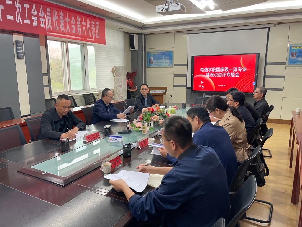 为进一步深化专业改革,强化一流专业建设内涵,落实好学校《关于开展学校一流本科专业建设点自评工作的通知》的相关要求,4月28日下午,电子与信息工程学院特别邀请北京交通大学陈后金教授(网评专家)、西北师范大学计算机科学与工程学院张志昌副院长、兰州理工大学计算机与通信学院张玺君副院长,在励志楼5楼小会议室开展国家级一流专业建设点自评。学院副院长申东主持了会议,4个国家级一流专业建设点相关负责人参会。