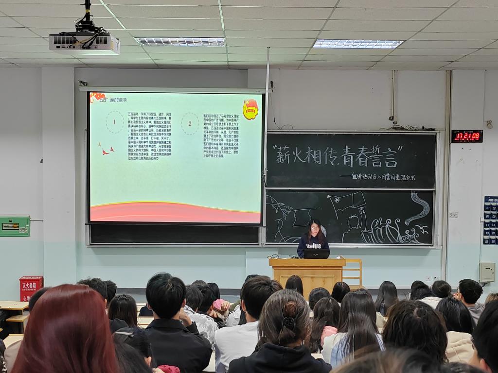 本次宣讲活动特别邀请了电子与信息工程学院团委各部门部长作为主讲嘉宾。各位部长结合自身的经历和学院的特点,向在场的同学们分享了五四运动的历史背景、深远意义以及新时代下青年学子应如何传承和发扬五四精神。同时深入剖析了五四精神的核心内涵,即爱国、进步、民主、科学。他们鼓励同学们要珍惜来之不易的学习机会,努力学习科学文化知识,积极参与社会实践,不断提高自身素质和能力,为实现中华民族伟大复兴的中国梦贡献青春力量。宣讲环节结束后,紧接着是入团誓词重温仪式。在庄严的团旗下,同学们齐声重温入团誓词,誓言要牢记初心使命,坚定理想信念,为实现中华民族的伟大复兴贡献青春力量。这一环节不仅唤起了同学们对入团时的初心和承诺的回忆,更激发了他们的责任感和使命感。活动现场氛围庄重而热烈,通过这次活动,同学们不仅学到了很多知识,还深刻认识到了自己的责任和担当。他们将以更加饱满的热情和更加坚定的信念,投身到学习和生活中去,为实现自己的梦想和中华民族的伟大复兴贡献自己的力量。