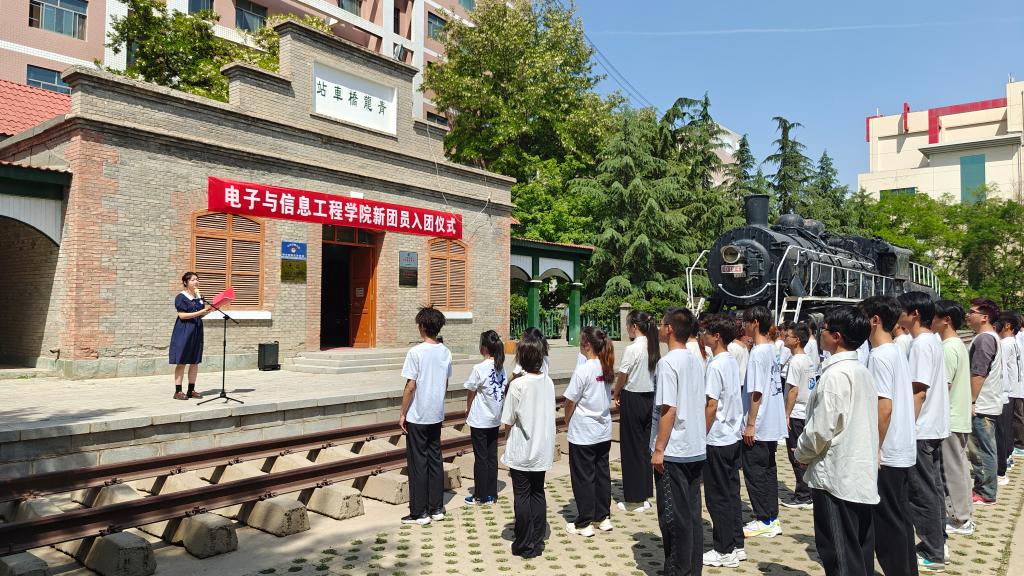 为进一步传承和弘扬五四精神,加强团员思想政治引领,切实增强团员先进性和光荣感,电子与信息工程学院团委于2024年5月9日在兰州交通大学青龙桥车站纪念馆举行“星火相传,共绘青春蓝图”---2024年电子与信息工程学院新团员入团仪式。院党委书记赵庶旭老师,院党委组织员刘慧烜老师,院团委书记杨天霞老师,院团委团学骨干以及46名新入团同学参加了本次入团仪式。