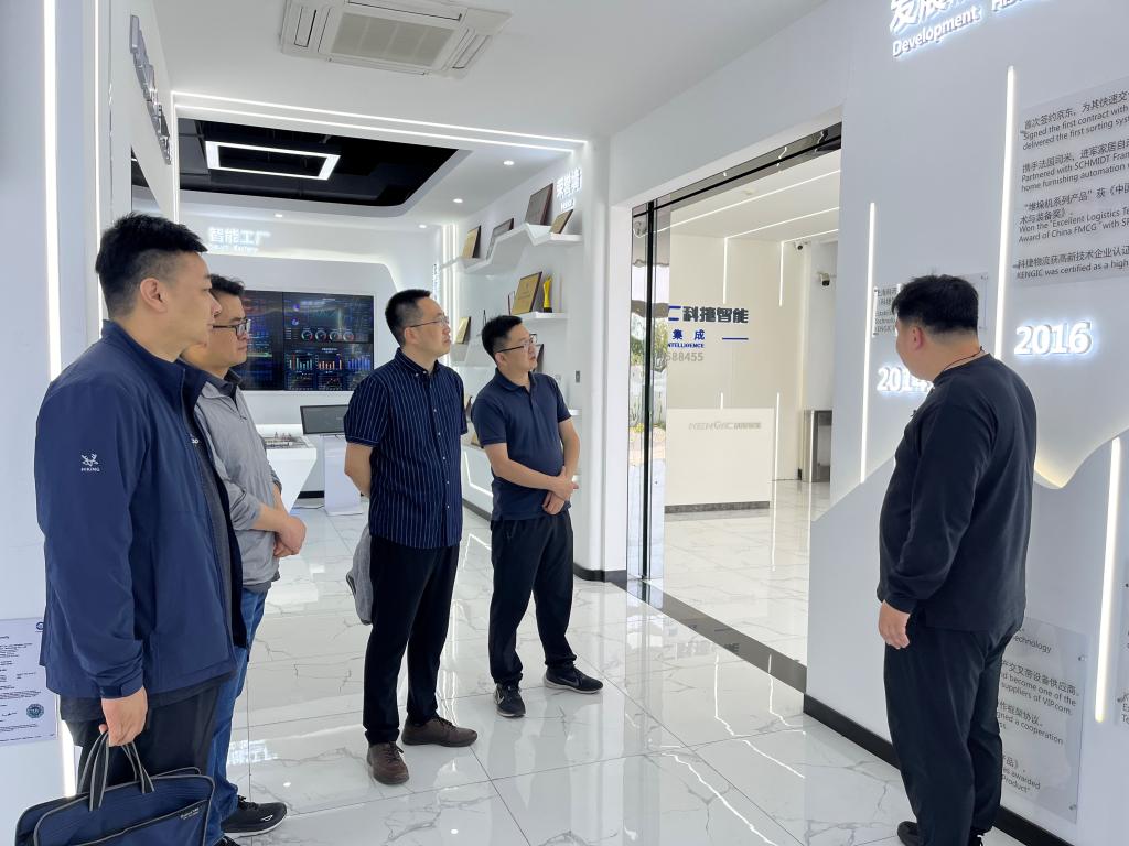 在科捷智能科技股份有限公司,调研组一行实地参观了公司的生产车间和研发中心。与企业高管就行业发展趋势、人才需求等问题进行了深入交流。科捷方面表示,将积极与学校开展联合培养、联合招聘等合作,为学生提供更多的实习和就业机会。
