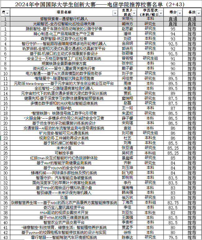 经过近5个小时的激烈角逐及评委老师的综合评判,最终45个参赛项目(2项直通+43项推荐)脱颖而出(见附件 ),并作为学院推荐项目参加校级选拔赛。