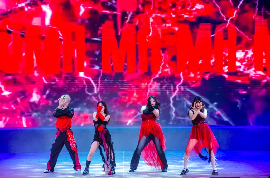 舞台上,精彩节目轮番上演。郑曾浩、赵敏琦、赵璐洁、黄思媛四位同学带来的开场舞《drama》瞬间点燃了全场的热情;《如果有来生》优美的旋律回荡在礼堂内,仿佛诉说着毕业生们对校园生活的不舍和对未来的憧憬;尹文佳等同学带来的舞蹈《SHEESH》诉说着青春的无畏;《画》将同学们带入了大学美好的回忆中;张锐和代威同学带来的相声《爱好》引得观众们阵阵欢笑,同时也让大家感受到了浓浓的同窗情谊……大一,大二的同学们纷纷登台,用他们的才艺展示着青春的风采,为毕业生们践行。毕业生们或深情演唱,或激情舞蹈,每一个节目都饱含着对母校的感恩之情和对未来的坚定信心。在晚会的尾声,全体毕业生共同合唱,那动人的旋律将整个晚会的氛围推向了高潮。