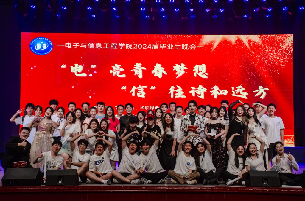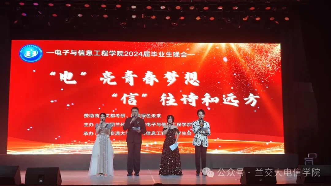 6月14日晚7:30分,交大礼堂内星光璀璨、气氛热烈,电子与信息工程学院‘电’亮青春梦想,‘信’往诗和远方”2024届毕业生晚会如期举办。晚会旨在通过丰富多彩的文艺表演展现电信学子的风采与活力,同时寄托学院广大师生对2024届毕业生们的深深祝福与殷切期望。这场晚会不仅是对即将扬帆远航的毕业生们的一次深情告别,也是对他们四年大学生涯美好记忆的温情回顾。