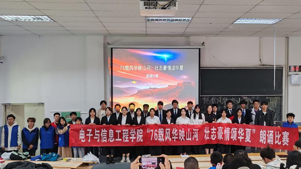 为深入学习贯彻习近平新时代中国特色社会主义思想,弘扬以爱国主义为核心的民族精神,厚植青年学子家国情怀,丰富校园文化生活,电子与信息工程学院于2025年10月16日——18日,在第七教学楼2403教室成功举办了“76载风华映山河,壮志豪情颂华夏”爱国主义主题朗诵比赛,活动吸引了学院众多朗诵爱好者积极参与。