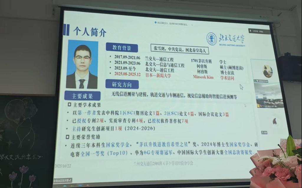 分享会上,特邀兰州交通大学通信工程系主任刘玉红老师及2024级通信工程01(茅)学子,汇聚多位优秀校友(包括大二、大三学长,已保研至北京交通大学并硕博连读的17级学长,以及考研至兰州大学后顺利入职中国电信的15级学姐),在干货满满的分享、温暖真诚的互动里,帮助25级新生卸下初入校园的迷茫,汲取奔赴未来的力量,让“坚守初心”的种子在青春土壤里深深扎根。