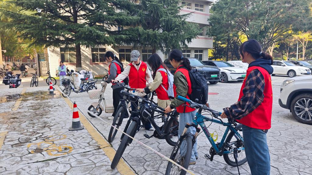为确保活动有序推进,负责人提前进行了周密安排。各小组分工明确,分别负责尚德楼前宣传栏的清洁、励志楼周边绿化带打扫及道路内自行车,电动车的摆放。这种“定区定责”的方式,既有效避免了卫生死角,也提高了劳动效率,为活动的顺利开展打下坚实基础。