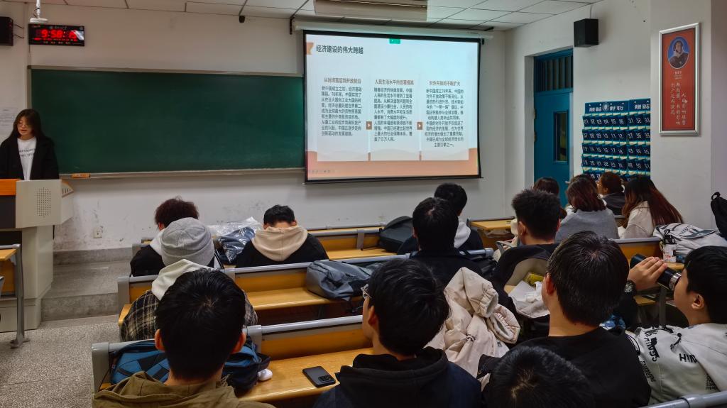 电子科学与技术2401团支部在团支书的带领下,系统回顾了新中国成立76年来的辉煌成就:从封闭落后走向开放创新,中国实现了从农业大国向工业大国的转变,正稳步迈入创新驱动发展新阶段;从温饱不足到全面建成小康社会,人民生活水平显著提升,建成了全球规模最大的社会保障体系。这些凝聚着数代人奋斗心血的伟大成就,激励着当代青年以实干精神续写国家发展新篇章。