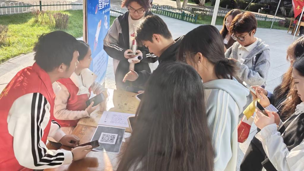 活动现场氛围热烈有序,灵活便捷的参与方式吸引众多同学驻足。同学们专注审题、认真作答,实时更新的排名榜单不仅增添了竞赛的趣味性,更激发了大家的求知热情与竞争意识。答题结束后,不少同学主动交流答题心得,分享对“两弹一星”精神的理解,进一步增强了精神传承的效果。