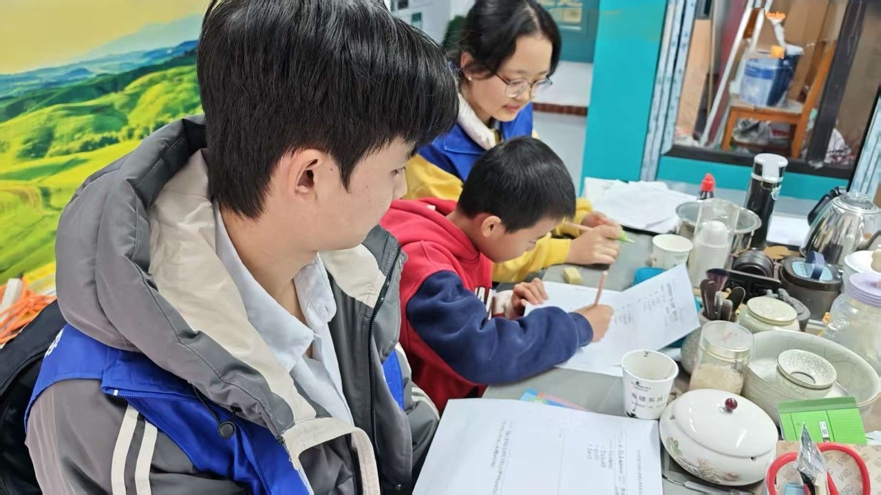 为确保辅导效果,志愿者们在辅导前提前与家长、孩子沟通,细致了解每位学生的学习习惯和实际需求。在语文辅导中,针对读写能力较弱的孩子,通过故事创作的方式练习写作,提升写作兴趣,对于年龄更低的小朋友则利用生字卡片强化基础累积;在数学课堂上,通过手工拼搭游戏认识几何图形,结合错题典型进行举一反三的练习,使抽象概念变得简单易懂;在英语学习环节,志愿者借助动画片段激发学生兴趣,在模仿跟读中锻炼口语表达能力,营造轻松愉快的学习氛围。完成课业后,志愿者们带领孩子参与到“桌面益智小游戏”中,并分享课堂笔记方法与学习小妙招,全面提升孩子们的学习能力与思维品质。