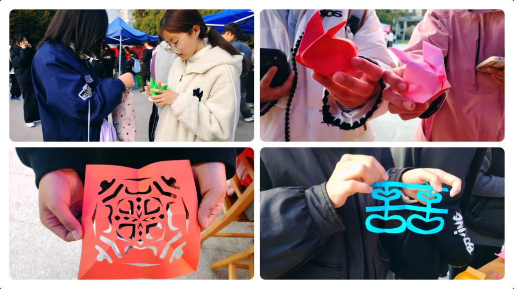 活动过程中,同学们相互交流经验、分享技巧,现场洋溢着欢声笑语。有的同学专注于传统剪纸纹样的复刻,在镂空与留白间展现古典美学;有的同学大胆创新,将现代元素融入作品设计,赋予传统手工艺新的时代内涵。不少同学表示,这样的活动不仅让大家体验到手工创作的乐趣,更深入了解了剪纸、折纸背后的文化底蕴,在快节奏的学习生活中收获了一份宁静与满足。
