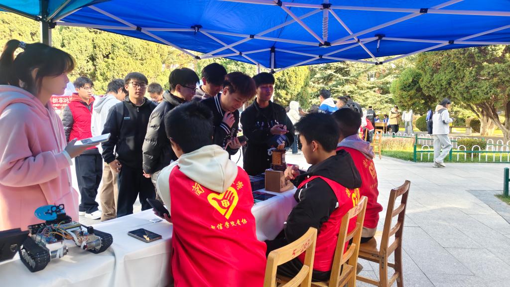 为深入学习贯彻党的二十大精神,推动红色文化与专业实践深度融合,激励青年学子以创新形式传承红色基因,2025年11月13日下午,由共青团兰州交通大学电子与信息工程学院委员会主办、学院青年志愿者协会承办的“星火相传,红色印记”红色文创作品展暨我最喜爱的文创评选活动,在鸽子广场顺利开展。电信学院副院长姜滨、团委老师杨天霞莅临现场和全校800余名本科生共同参与活动,在参观创意展品与沉浸互动体验中,让红色文化焕发青春活力。