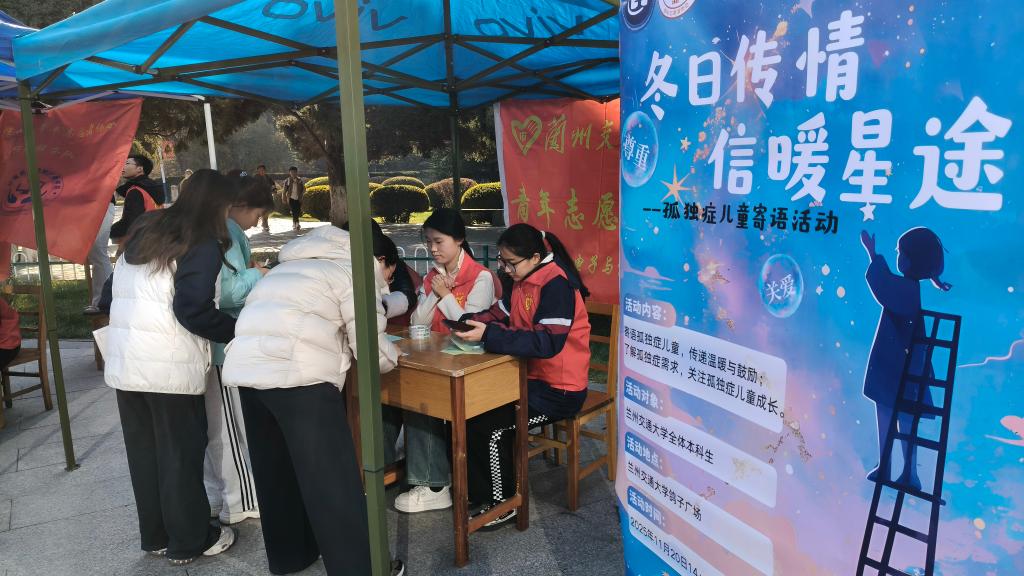 为让孤独症儿童感受到社会关怀,搭建心与心的沟通桥梁,2025年11月20日,兰州交通大学电子与信息工程学院青年志愿者协会在鸽子广场开展“冬日传情,信暖星途”孤独症儿童寄语活动。本次活动的成功开展为孩子们送去了来自社会的温暖与善意,让他们真切感受到被关注、被爱护,有效缓解其成长过程中可能面临的孤独感,为他们的精神世界注入温暖力量。