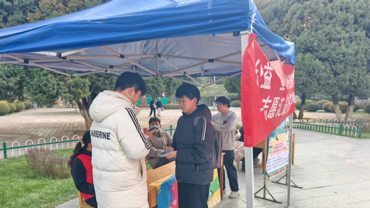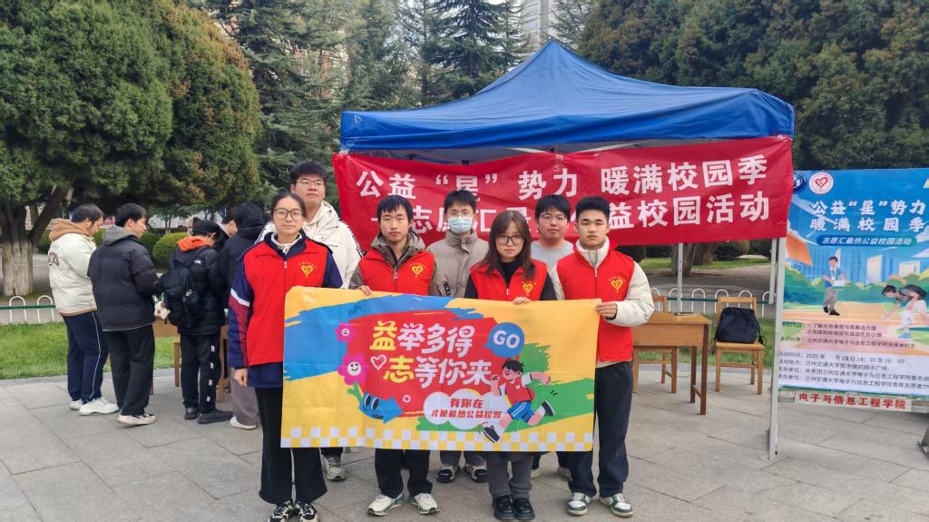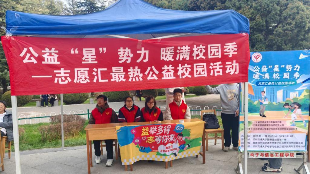 为进一步弘扬“奉献、友爱、互助、进步”的志愿精神,拓宽校园公益参与渠道,让志愿服务理念深入人心,2025年11月22日,兰州交通大学电子与信息工程学院青年志愿者协会于鸽子广场成功举办“公益‘星’势力,暖满校园季”志愿汇最热公益校园线下推广活动。活动通过“现场讲解与实操指导”形式开展,吸引了全校学生的积极参与,成为校园内一道温暖的风景线。