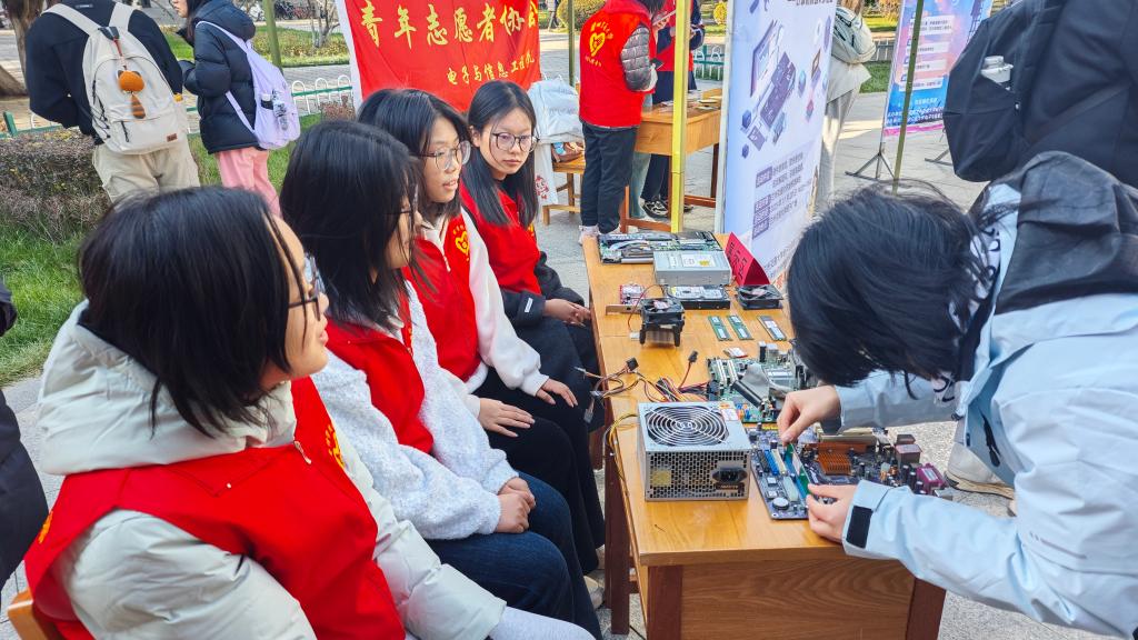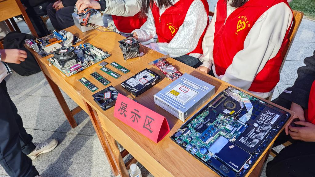 在维修服务区,志愿者们运用专业工具,为师生提供了系统重装、软件调试、病毒查杀、硬件检测等全方位技术服务。他们不仅快速诊断问题,还耐心讲解故障原因和预防措施,将技术服务与知识传授有机融合。知识问答区围绕计算机基础原理和日常维护设置了丰富的题目,帮助师生深化对计算机知识的理解。硬件展示区陈列了CPU、内存条、显卡等核心部件,配合志愿者的专业讲解和现场演示,帮助师生深入了解计算机内部结构。特别设置的动手组装环节,更让抽象的理论知识变得直观可感,增强了参与者的实践体验。活动现场气氛热烈,志愿者们用专业的技术能力和热情的服务态度,展现了电信学子扎实的专业素养和良好的精神风貌。