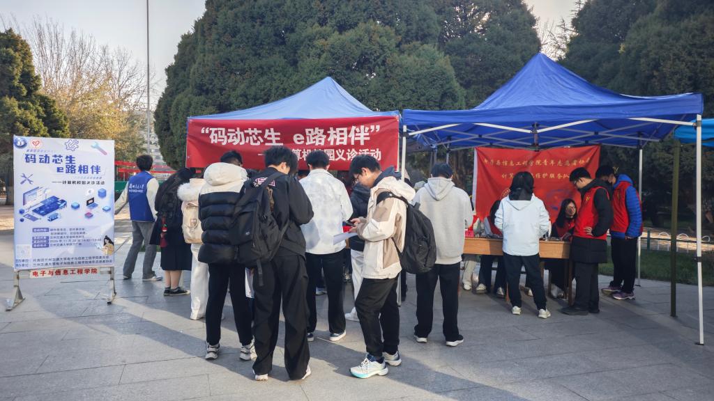 为充分发挥专业特色,服务校园师生,2025年11月20日,电子与信息工程学院青年志愿者协会联合院学生会、软件协会,在学校鸽子广场成功举办“码动芯生,e路相伴”计算机校园义诊活动。本次活动整合多方资源,聚焦师生在日常计算机使用中遇到的实际问题,提供系统安装优化、软件故障修复、病毒查杀、硬件检测等全方位技术服务,同时开展计算机知识普及,吸引了大量师生携带设备前来参与。
