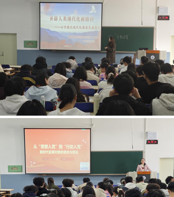 本次发展对象集中培训中课堂教学环节为期两天,学院党委邀请学校马克思主义学院教师薛思佳老师,西北师范大学教师高晓英老师,电信学院教师尚天城老师、姚敏老师分别讲授了题为“维护塑造国家安全”“厚植绿色底色 建设美丽中国”、“中国式现代化:价值尺度与真理尺度的辩证统一”“以新质生产力推动经济高质量发展”、“共产党员加强党性修养的路径与方法”“新时代新的文化使命”、“守好入党“档案关”:发展对象档案认知与实操”“从“思想入党”到“行动入党”—新时代发展对象的使命与担当”等8讲党课,共16学时。课程内容丰富,案例鲜活,课堂氛围活跃,学员学习热情高,达到了预期效果。课堂教学完成后组织完成全体入党积极分子培训考试,培训期间,各党支部积极组织开展了交流研讨和实践活动等环节。